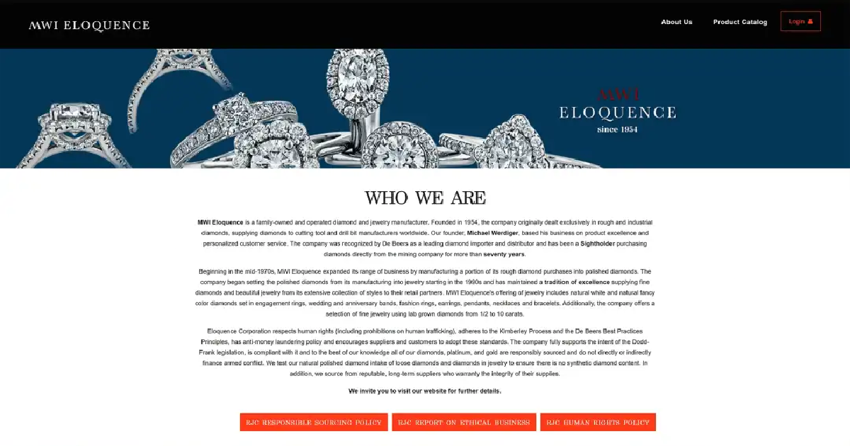 MWI Eloquence connects jewelry distributors to retail establishments and is intended for B2B transactions. Retailers can browse the latest designs—engagement rings, earrings, bracelets, and more—organized by category, subcategory, and diamond attributes, such as color, shape, carat, and clarity.Because the system offers role-based pricing, different user groups are charged varying rates for the same products. Creating sales memoranda and downloading product PDFs lets users simplify order handling and customer contact.Designed for simplicity and efficiency, the portal streamlines jewelry professionals' purchases and searches all throughout the United States.
